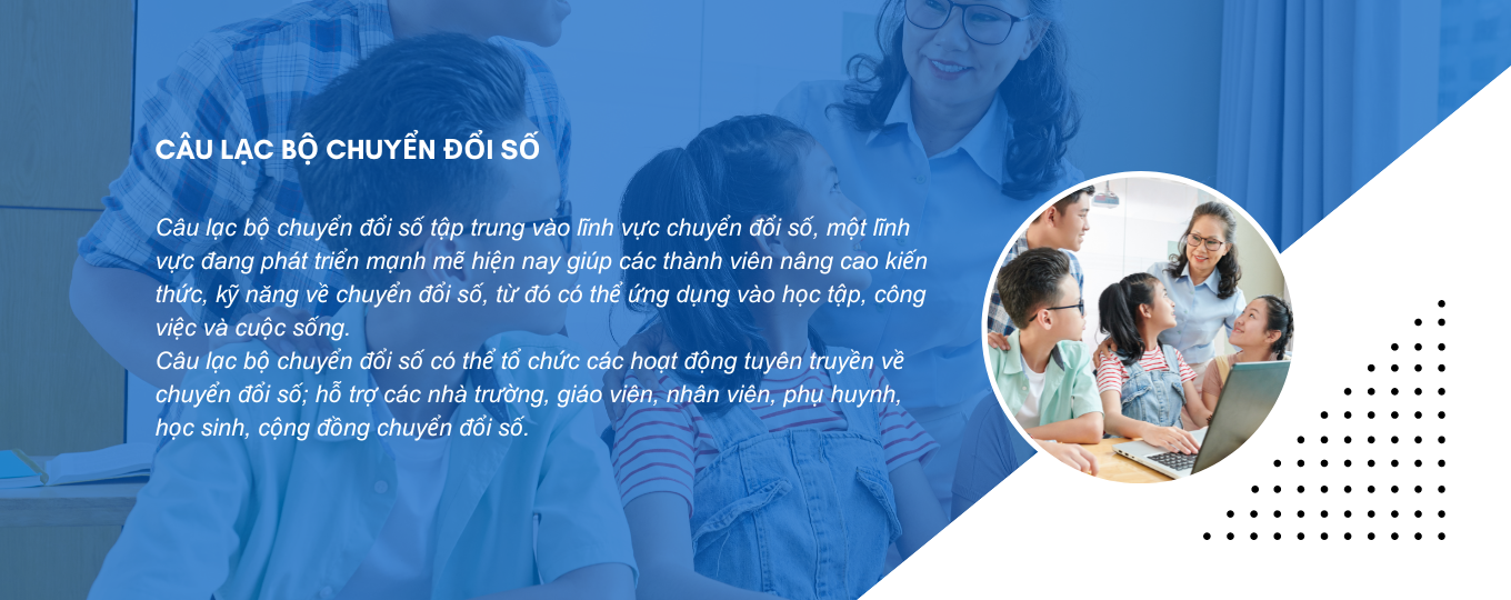 Cung cấp kiến thức, kỹ năng về chuyển đổi số cho học sinh: Câu lạc bộ có thể tổ chức các hoạt động như hội thảo, tọa đàm, dự án, cuộc thi,… để giúp học sinh hiểu rõ về chuyển đổi số, từ đó vận dụng kiến thức và kỹ năng này vào học tập, cuộc sống.